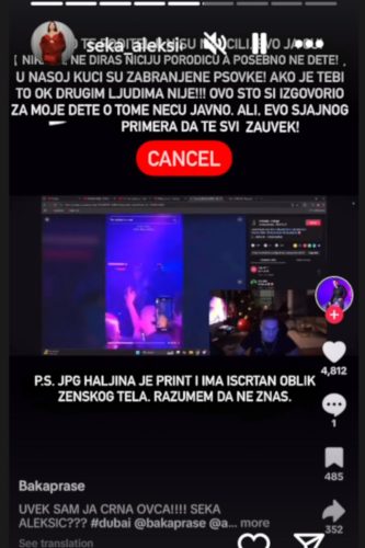 „Гледајте ја Сека Алексиќ, која ме навредуваšе дека не вредам, дека не му дозволува на синот да ме гледа. Гледајте šто носи на настапите, гледајте го ова“, запоčна Богдан, па додаде:
