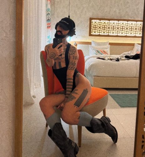 Пред својот концерт, Боже објави фотографија од хотелската соба на која позира во минимално трико, капче и чизми.