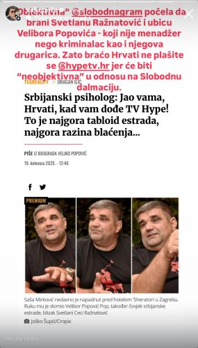 – Објективната „Слободна Далмација“ почна да ја брани Светлана Ражнатовиќ и убиецот Велибор Поповиќ – кој не е менаџер, туку криминалец, исто како и неговата пријателка. Затоа, браќа Хрвати, не плашете се од Hypeтв.хр, затоа што ќе биде „необјективна“ во споредба со „Слободна Далмација“ – напиша Мирковиќ.