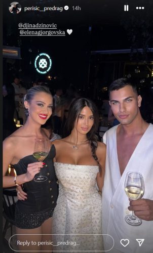 Џина беше во друштво на македонскиот модел Елена Ѓорговска и нејзиниот најдобар пријател, Предраг Перишиќ. Тројката уживаше во атмосферата, наздравувајќи со вино, додека ги привлекуваа погледите на сите присутни. Насмевки, гламур и стил – тоа беше главната слика од нивната вечер.