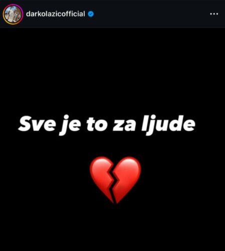 Сепак, нивните најнови објави ги фрлија фановите во дилема, па многумина се запрашаа дали во нивниот брак сè е во ред. Имено, Дарко објави фотографија на која пишуваше: „Се тоа е за луѓе“, заедно со скршено срце.