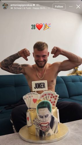И Антониа се приклучи на славјето: таа на своето „стори“ објави фотографија од роденденска торта инспирирана од познатиот филм „Џокер“, со ликот на култниот лик на украсот, со што му приреди посебна честитка на својот сопруг.