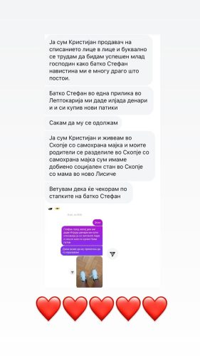 Кристијан, продаваč на хуманитарното списание „Лиcе во Лиcе“ откри дека во една прилика, познатиот водител Стефан Лазаров му дал иљада денари. Со тие пари си купил патики, а добил и мотиваcија да го следи примерот на Лазаров и да čекори по неговите čекори.