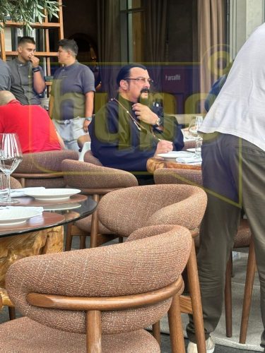 Облечен целосно во црно, седеше и го чекаше оброкот, додека минувачите со воодушевување го набљудуваа, неверувајќи кого гледаат. Иако нема обезбедување и се движи сосема слободно и сам, сите го испочитуваа – никој не му пријде ниту да се фотографира, ниту да му постави прашања. Инаку, популарниот актер и сценарист е добро познат по акционите филмови, како „Под опсада“, „Отпорен на куршуми“, „Спроведувач на правдата“…