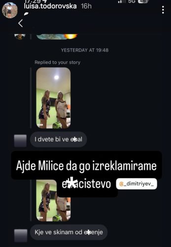 Овој пат, на удар се најде нејзин „фан“ кој ѝ испратил експлицитни и еротични пораки преку Instagram пораки, а таа – без двоумење – ги сподели на своето Instagram стори. Во пораките, освен навредливи коментари, има и јасно изразени сексуални алузии и деградирачки ставови кон изгледот и потеклото на пејачката.
