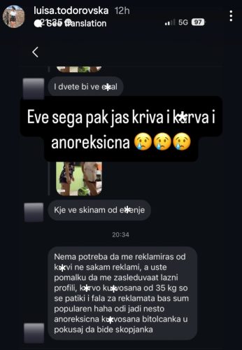 Подоцна, истиот профил повторно ѝ се обратил – овојпат со уште понавредливи и понискажувачки изјави, на што пејачката повторно реагираше транспарентно: монологот беше објавен јавно, без цензура.