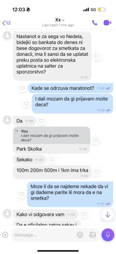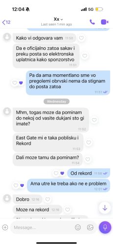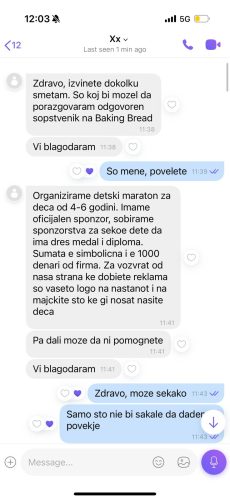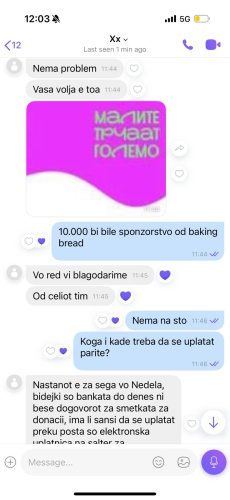 „Ми пиша со идеја дека ќе организира маратон за деца, бараше 1.000 денари, а како возврат ќе добиеме објава на Инстаграм и логото на нашата фирма на некаков флаер. Одма ми беше сомнително, па побарав детали – не добив ништо конкретно,“ вели соговорникот за нашата редакција.