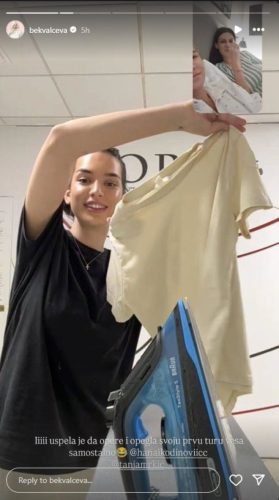 Пејачката го овековечи моментот кога Хана пеглаше облека и веднаш го објави јавно. „Ииии, успеа сама да ја испере и испегла првата тура облека“, напиша Наташа.