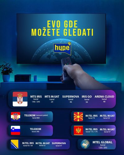 HYPE ТВ и HYPE 2 се достапни во повеќе земји од регионот, и горди сме што градиме силна врска со нашата публика во Србија, Босна и Херцеговина, Црна Гора, Северна Македонија, а од неодамна и во Хрватска и Словенија.