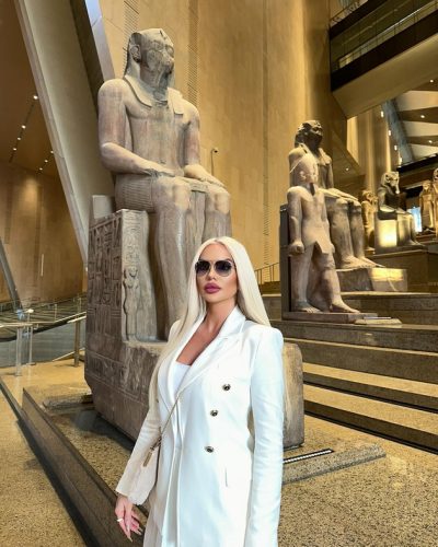 Професорката по солфеž, мејкап артист и инфлуенсерка, Калтрина Круезиу, повторно го привлеčе вниманието со своите авантуристиčки и стилски моменти, овој пат од Египет.