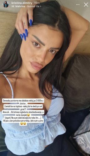 Атрактивната пејачка и инфлуенсерка Кристина Димитри повторно предизвика бурни реакции на социјалните мрежи, откако на својот Instagram профил сподели стори каде откри дека и денес некој ја следел по улиците.