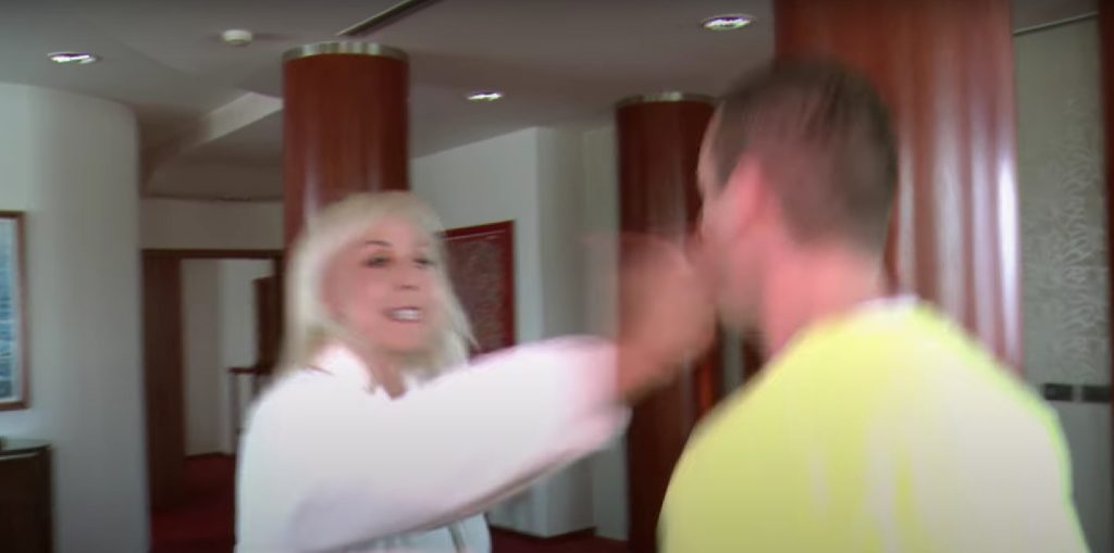 – „Нели ти реков да не ме прашуваш тоа?!“ – кажа Брена, па потоа со сета сила го удрила водителот на емисијата кој од јачината на ударот паднал на подот.