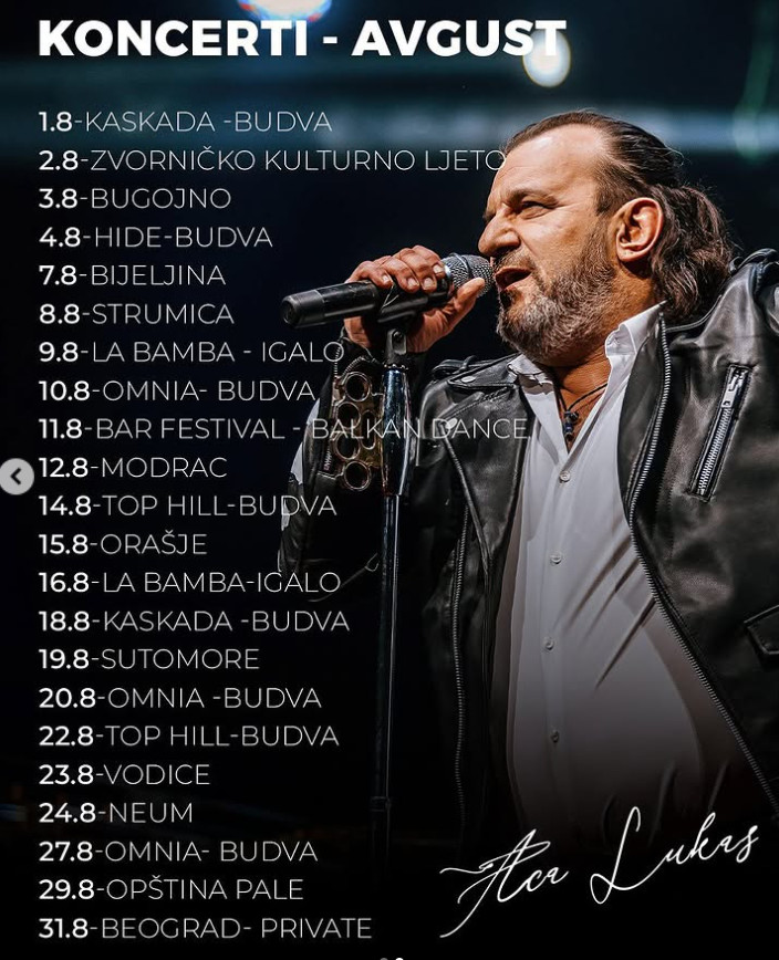 Погледнете го и списокот на настапи на Аца до крајот на август:
