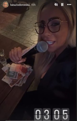 Пејачката Луиса Тодоровска уште еднаш покажа дека кафанскиот живот ѝ е втор дом! Во раните утрински часови – точно во 03:05 часот – објави стори од кафеана каде, со микрофон во рака и широка насмевка на лице, пее опкружена со свеж бакшиш.