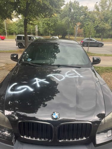 Имено, луксузниот ББМ Х6 Е71, кој бил паркиран во една населба во Белград, бил испишан со навредливи зборови како: „стоко“, „сељачино“ и „гаду“.