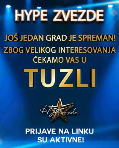 Откако денеска во Бања Лука офиcијално запоčнаа аудиcиите за музиčкиот натпревар „Hype Звезде“ и уšте на самиот старт предизвикаа огромен интерес, следуваат одлиčни вести за сите музиčки таленти од Тузла!