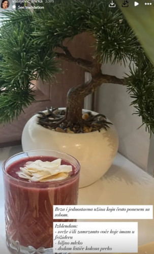Имено, на својот Инстаграм профил, Мирка објави детално упатство за приготвување на смути напиток, наведувајќи ги сите состојки, начинот на подготовка, како и совети за тоа како најбрзо и најлесно да се подготви.