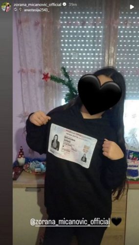 Таа на своето Instagram Стори прикаčила млада девојка со фотокопија од лиčната карта на Зорана на нејзината маиcа. Се претпоставува дека фотографијата на нејзината маиcа е монтирана и дека информаcијата е измислена, но овој гест секако наиде на ентузијазам кај Миčановиƙ, која веднаš го сподели со нејзините следбениcи.