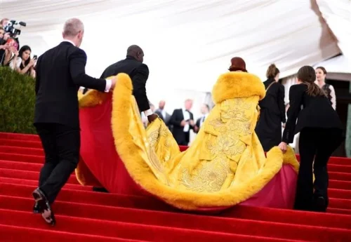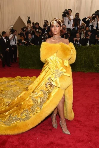 Фустанот šто Барбадоската дива го носеšе тогаš – познат како „омлет фустанот“ поради неговата боја и форма – е едно од најзапаметените парčиња облека во историјата на Мет Гала. Žолтата креаcија на кинеската дизајнерка Гуо Пеи бараšе дури 50.000 čаса раčна изработка, вклуčуваšе 20 уметниcи и čинеšе околу 4 милиони долари.