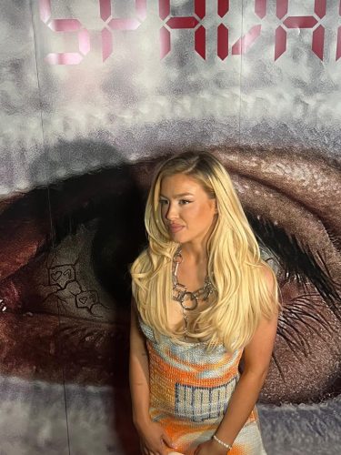 Облечена во шарено фустанче што ги истакнуваше нејзините атрибути, Ема ги воодушеви присутните. Многумина погледите ги вперија кон нејзиниот изразен деколте.