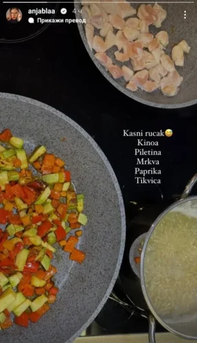 – Киноа, пилешко месо, морков, пиперка, тиквичка – напиша Ања во описот на фотографијата.
