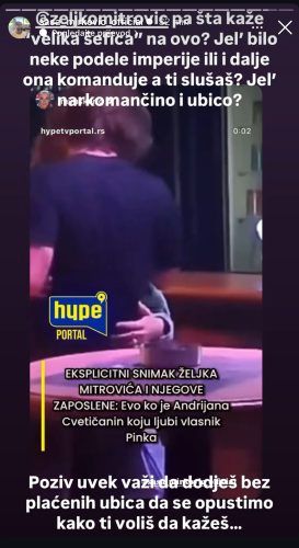 Инаку, Мирковиќ поднесе кривиčна пријава против Žељко, кој му испраќал закануваčки пораки со вознемируваčка содрžина. Првиčниот поттик Мирковиќ да го направи овој потег беšе тоа šто Митровиќ на уžасен наčин го спомна и семејството на Мирковиќ, šто моžете да проčитате: