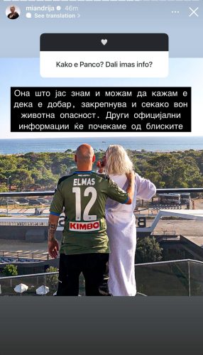 „ОНА ŠТО МОŽАМ ДА ГО КАŽАМ Е ДЕКА Е ДОБАР, ЗАКРЕПНУВА И СЕКАКО Е НАДВОР ОД ŽИВОТНА ОПАСНОСТ. ДРУГИ ОФИCИЈАЛНИ ИНФОРМАCИИ ЌЕ ПОČЕКАМЕ ОД НЕГОВИТЕ БЛИСКИ“ – истакна Миа.