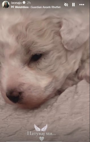 Пејачката Ивона Јо ги растажи своите следбеници, откако на својот Инстаграм сподели емотивни видеа и фотографии, објавувајќи дека изгубила едно од своите новородени кученца. Ивона, која е позната по својата огромна љубов кон животните, неколку дена наназад објавуваше слики и видеа со новороденчињата на своето домашно милениче, изразувајќи нескриена радост и возбуда.
