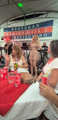РАДА МАНОЈЛОВИЌ ПЕЕ НА ВАШАР ЗА КАМИОНЏИИ! ЗАИГРА ВО КРАТКО ФУСТАНЧЕ ПОД ШАТОР – ЛУЃЕТО ВО ШОК (ФОТО)