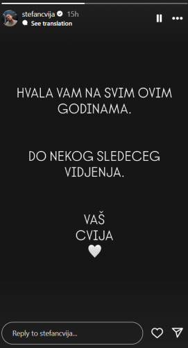 „Имам 18 години кариера зад себе, моментално ставам точка на музиката, посветен сум на други работи. Последните 17 години не сте ме гледале по настани, и се надевам дека нема ни да ме гледате,“ искрено изјави Стефан.