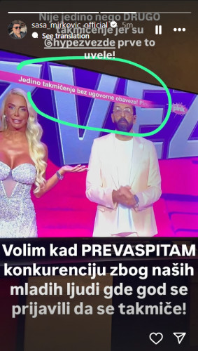 Саша Мирковиќ, сопственик и директор на Хајп продукцијата и телевизијата, се огласи преку својот официјален Инстаграм профил откако на телевизија Пинк започна музичкото натпреварување „Пинкови Ѕвезди“.