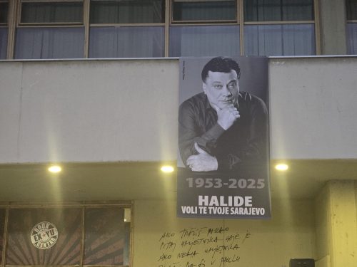 На зградата е поставен голем портрет на Халид Бешлиќ со натпис: „Халиде, те сака твоето Сараево“.