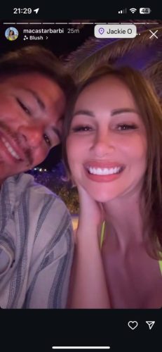 Маца се опушти со коктели и гласна музика, а набргу влезе во многу близок контакт со двајца мажи. Еден од нив, значително помлад, доби особено внимание од неа. Таа објави фотографија со провокативна порака: „Сѐ што бившиот нема – овој има. Американец, 20 години.“