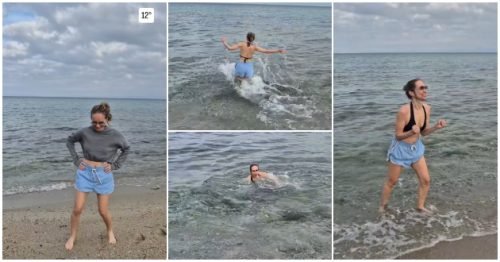 Без некои посебни подготовки и техники таа ја собра храброста и се втрčа кон морето!