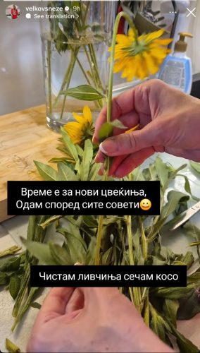 Таа викендов сподели „стори“ на Инстаграм каде што ја гледаме како марливо ги чисти ливчињата цвеќињата,