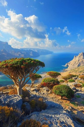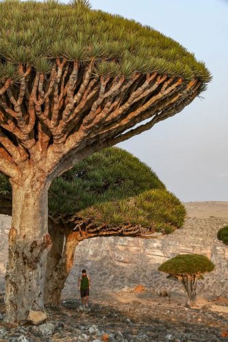 - Дрвјата од „Змејска крв“: Распознајливи по чадорот-подобниот врв и црвениот смолест сок, овие древни дрвја преживуваат стотици години. Се проценува дека има околу 9.000 примероци, претставувајќи околу 40 % од светската популација.