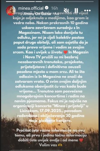 Сега се огласи и Минеа на социјалните мрежи и потврди дека повеќе не е дел од Нова ТВ: