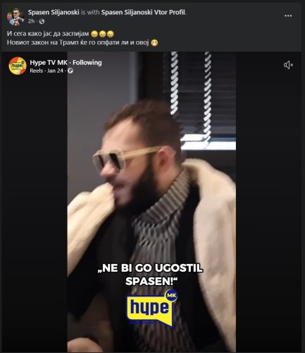 Споделувајќи ја изјавата на Давид за HYPE МК на својот Фесјбук профил, Спасен напиšа дека се праšува „како да заспие“, а ги праšа и своите пријатели „дали новиот закон на Трамп ќе го опфати“ водителот.