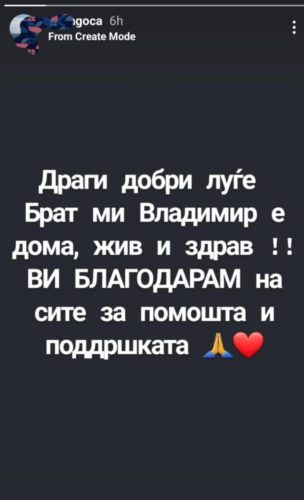 Неговото семејство ја потврди информацијата, при што неговата сестра преку социјалните мрежи соопшти дека Владимир е веќе дома, безбедно вратен кај своите најблиски.
