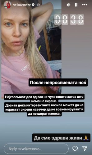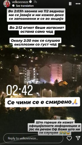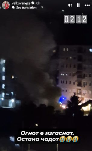 Дополнително се огласи и нашата водителка Снеже Велков, која преку својот Instagram стори објави дека пожарот избувнал во близина на зградата каде што таа живее. Таа сподели дека се слушале силни експлозии, а во паника веднаш го пријавила на надлежните служби. Иако пожарот бил успешно изгаснат, густ чад подолго време се ширел низ целиот реон, предизвикувајќи загриженост кај граѓаните.