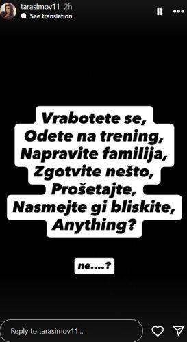 „Вработете се, Одете на тренинг, Направите фамилија, Згответе нешто, Прошетајте, Насмејте ги блиските, Анyтхинг?“, прашува таа, додавајќи и иронично: „не…?“