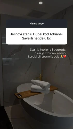 Пејачката купила дуплекс стан, за кој, според информациите, платила околу 400.000 евра. Иако сè уште не го има прикажано целиот ентериер, неодамна сподели една фотографија од купатилото, каде што може да се забележи нејзиниот префинет вкус.