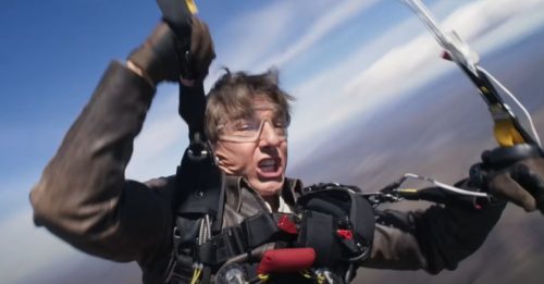 И навистина, додека многу ѕвезди се потпираат на дублери, Круз со години сам ги изведува своите најопасни сцени – од висење од хеликоптери до трчање по движечки возови, а сега и… скокање со запален падобран!