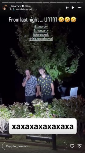 Синоќа сцената беше преполна со смеа и позитивна енергија, а публиката уживаше во свежиот хумор на Тино Костадиновски и Атанас Атанасовски. Атмосферата од ова урнебесно стенд-ап шоу не остана незабележана ни на социјалните мрежи – популарниот Сергеј Варошлија на својот Instagram профил сподели стори кое ја пренесе дел од синоќешната забава.