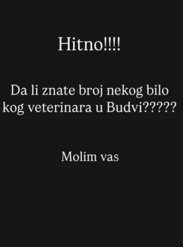 – Итно. Дали некој го знае бројот на било кој ветеринар во Будва, ве молам – напиша таа.