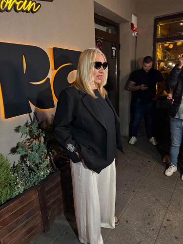 Весна излезе од својот луксузен автомобил, а на прв поглед вниманието го привлече интересното сако и белите панталони што совршено ѝ прилегаа.