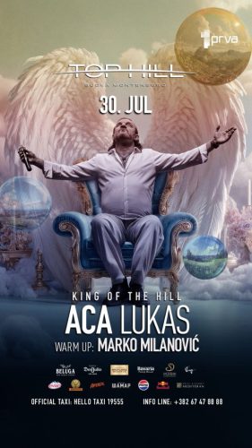 Аца Лукас ќе одржи концерт на 30 јули во Будва, а настапот ќе се случи на познатата сцена на Топ Хил. Веќе е традиција најголемата регионална ѕвезда, Аца Лукас, секоја година да настапува во оваа најголема дискотека.
